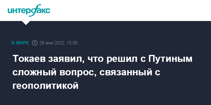 Токаев заявил, что решил с Путиным сложный вопрос, связанный с геополитикой