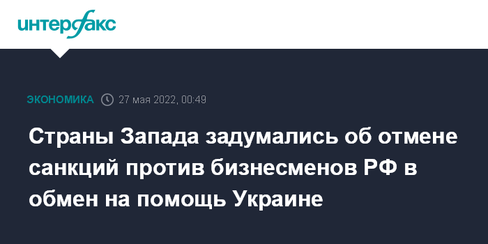 Страны Запада задумались об отмене санкций против бизнесменов РФ в обмен на помощь Украине