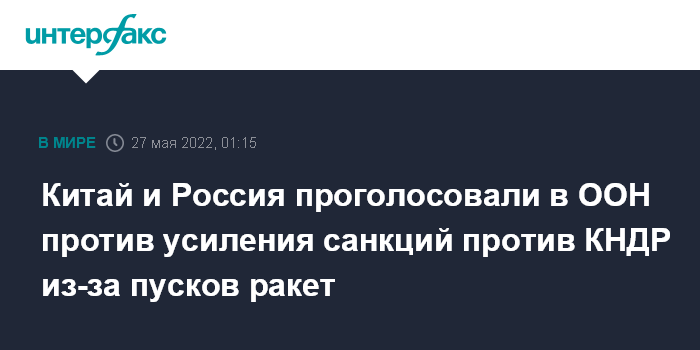 Китай и Россия проголосовали в ООН против усиления санкций против КНДР из-за пусков ракет