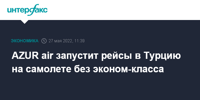 AZUR air запустит рейсы в Турцию на самолете без эконом-класса