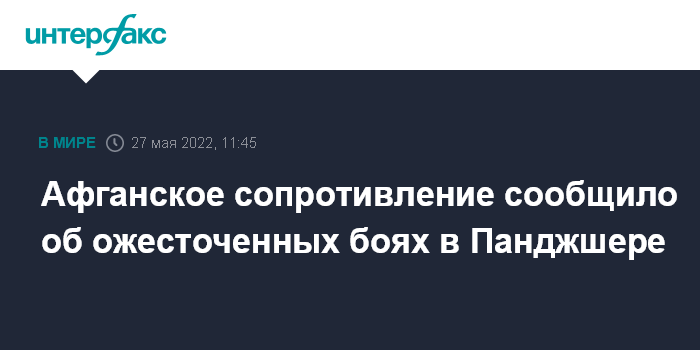 Москва. 27 мая. INTERFAX.RU - Противостоящий "Талибану" (движение признано в России террористическим и запрещено) Фронт национального сопротивления (ФНС) сообщил, что за последние сутки в Панджшере прошли боестолкновения, и за ночь были убиты 27 талибов.