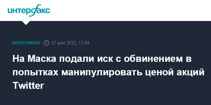 Москва. 27 мая. INTERFAX.RU - Акционеры Twitter Inc подали в суд на Илона Маска, обвинив его в "противоправном поведении" и попытках манипулировать стоимостью акций компании.
