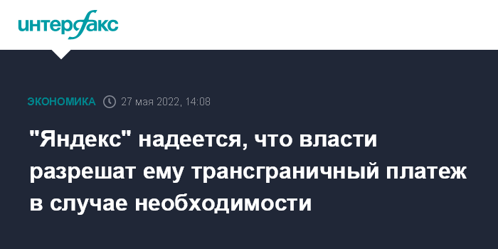 "Яндекс" надеется, что власти разрешат ему трансграничный платеж в случае необходимости