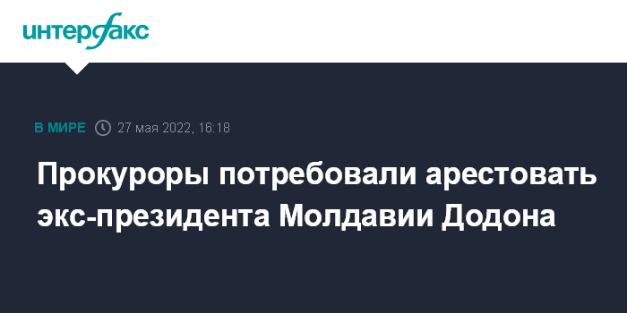 Москва. 27 мая. INTERFAX.RU - Прокуроры обжаловали в Апелляционной палате решение о домашнем аресте экс-президента Молдавии Игоря Додона и потребовали его ареста на 30 суток, сообщила в пятницу пресс-служба Генеральной прокуратуры страны.