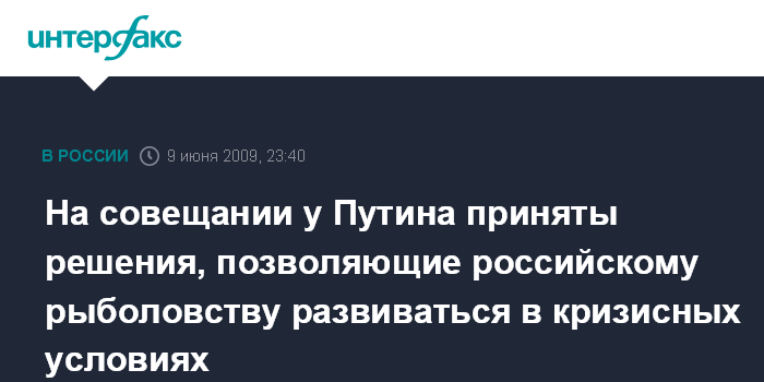 На совещании у Путина приняты решения, позволяющие российскому рыболовству развиваться в кризисных условиях