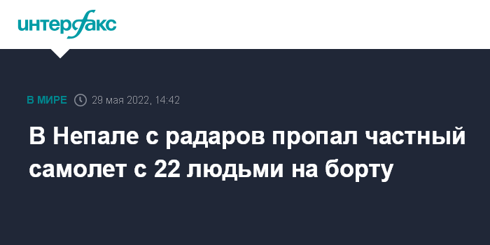Москва. 29 мая. INTERFAX.RU - Самолет авиакомпании Tara Air пропал с радаров в Непале утром в воскресенье, сообщает телеканал CNN.