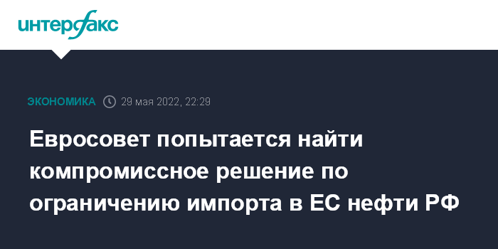 Евросовет попытается найти компромиссное решение по ограничению импорта в ЕС нефти РФ
