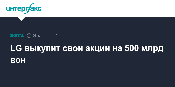 LG выкупит акции на сумму 500 млрд вон ($400 млн), что составляет порядка 4% ее капитализации, до 2024 года.