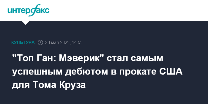 "Топ Ган: Мэверик" стал самым успешным дебютом в прокате США для Тома Круза