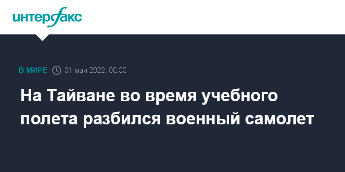 Москва. 31 мая. INTERFAX.RU - На юге Тайваня разбился учебно-тренировочный самолет тайваньских ВВС AT-3, пилот погиб, сообщает Taiwan News со ссылкой на военное ведомство.