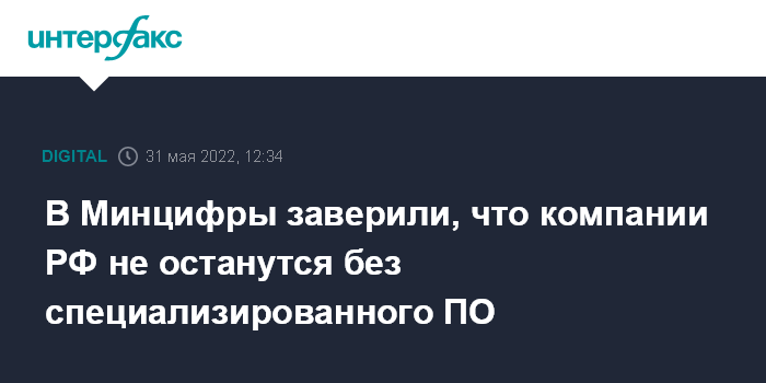 Москва. 31 мая. INTERFAX.RU - Крупные российские компании, закупавшие специализированное программное обеспечение (ПО) у зарубежных разработчиков, не останутся без софта; некоторые заказчики уже переходят на отечественные решения, заявил "Интерфаксу" глава Минцифры РФ Максут Шадаев.
