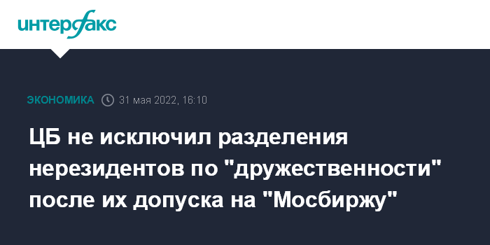 ЦБ не исключил разделения нерезидентов по "дружественности" после их допуска на "Мосбиржу"