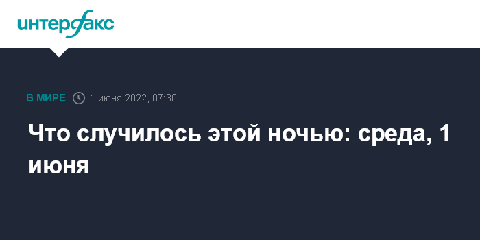 Москва. 1 июня. INTERFAX.RU - Краткая сводка событий, произошедших к утру: