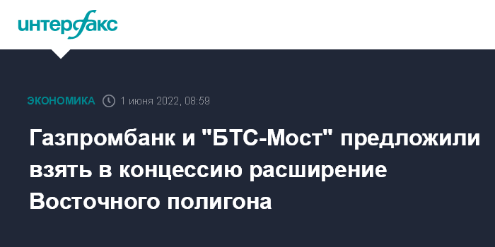 Газпромбанк и "БТС-Мост" предложили взять в концессию расширение Восточного полигона
