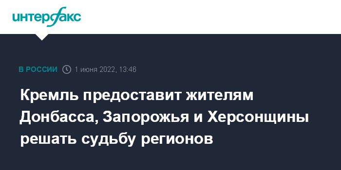 Кремль предоставит жителям Донбасса, Запорожья и Херсонщины решать судьбу регионов