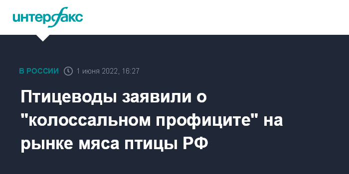 Москва. 1 июня. INTERFAX.RU - Национальный птицеводческий союз отмечает "колоссальный профицит" на рынке мяса РФ.
