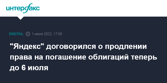 "Яндекс" договорился о продлении права на погашение облигаций теперь до 6 июля