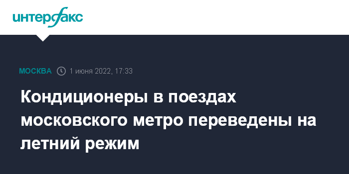 Москва. 1 июня. INTERFAX.RU - В московском метро все кондиционеры в поездах перевели на летний режим, потому что на улице потеплело, сообщил Департамент транспорта столицы.