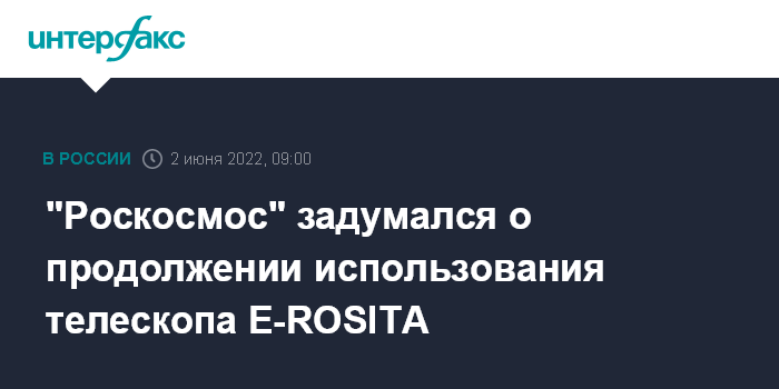 Москва. 2 июня. INTERFAX.RU - Российские специалисты настаивают на продолжении работы телескопа E-ROSITA, российско-германской орбитальной обсерватории "Спектр-РГ", хотя германская сторона потребовала его выключить. Об этом в Telegram сообщил глава "Роскосмоса" Дмитрий Рогозин.