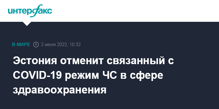Москва. 2 июня. INTERFAX.RU - Департамент здоровья Эстонии сообщил о завершении чрезвычайной ситуации в области здравоохранения в связи с эпидемией коронавируса.