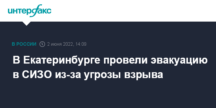 Москва. 2 июня. INTERFAX.RU - В СИЗО-1 в Екатеринбурге прошла эвакуация из-за сообщения о минировании. Из здания вывели 73 человека - посетителей и сотрудников, уточнили в управлении ФСИН по Свердловской области.