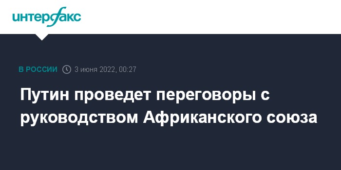 Москва. 3 июня. INTERFAX.RU - В Сочи в пятницу, 3 июня состоятся переговоры президента РФ Владимира Путина с председателем Африканского союза, президентом Сенегала Макки Саллом, в которых также примет участие председатель Комиссии Африканского союза Мусса Факи Махамат, сообщила пресс-служба Кремля.