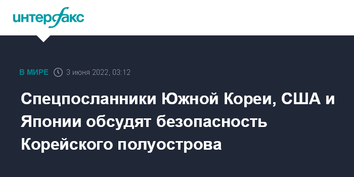 Москва. 3 июня. INTERFAX.RU - Высокопоставленные спецпосланники Южной Кореи, США и Японии встретятся в Сеуле в пятницу, чтобы обсудить ситуацию с безопасностью на Корейском полуострове, сообщает "Ренхап".