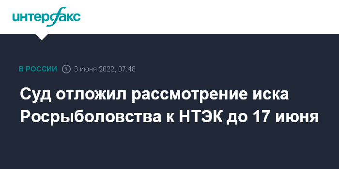 Суд отложил рассмотрение иска Росрыболовства к НТЭК до 17 июня