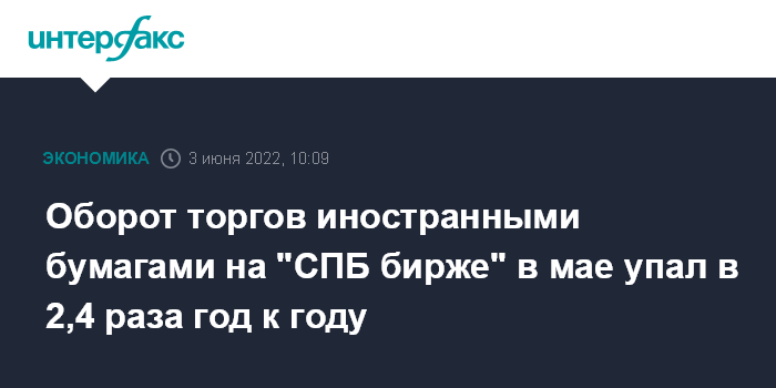 Оборот торгов иностранными бумагами на "СПБ бирже" в мае упал в 2,4 раза год к году