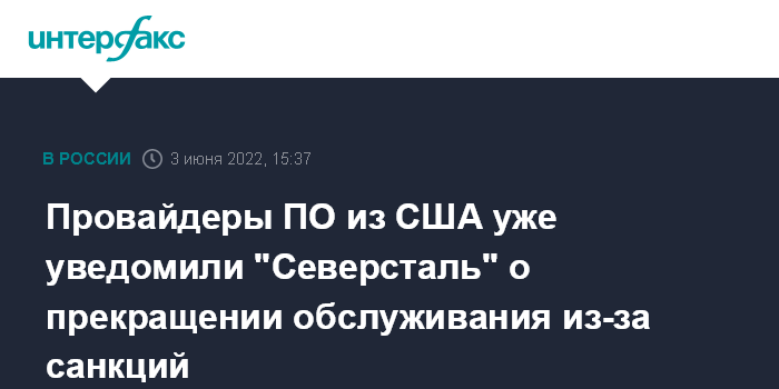 Провайдеры ПО из США уже уведомили "Северсталь" о прекращении обслуживания из-за санкций