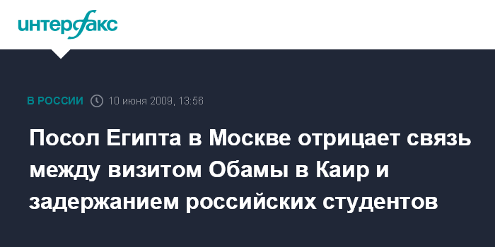 Посол Египта в Москве отрицает связь между визитом Обамы в Каир и задержанием российских студентов