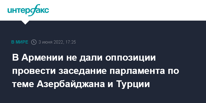 Оппозиционные парламентские фракции Армении "Честь имею" и "Армения" созвали на 3 июня заседание парламента республики, на котором планировалось решить вопросы в рамках процессов карабахского урегулирования, армяно-азербайджанских и армяно-турецких отношений.