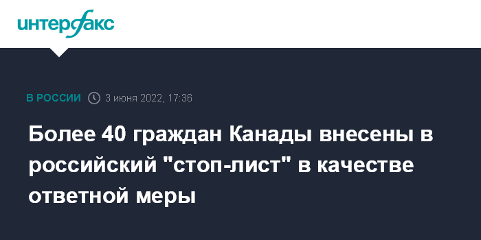 Список лиц, пополнившийся 41 канадским гражданином, также опубликован на сайте МИД России.