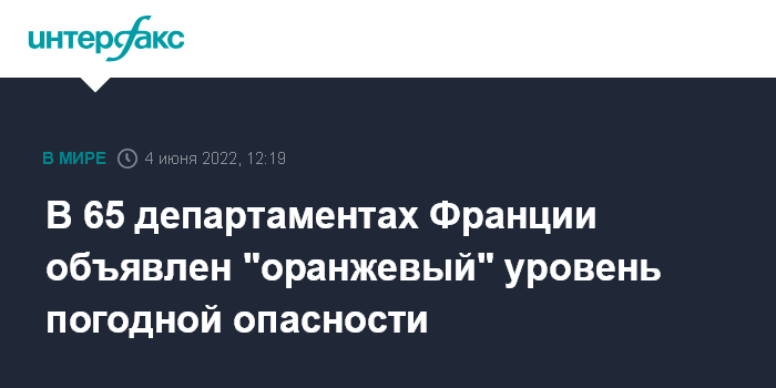 В целом по стране в 65 департаментах объявляется "оранжевый" уровень погодной опасности. Таким образом, с перспективой сильных дождей столкнется обширная территория Франции.