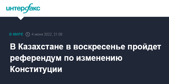 Москва. 4 июня. INTERFAX.RU - В Казахстане в воскресенье, 5 июня, состоится республиканский референдум по внесению изменений и дополнений в Конституцию.