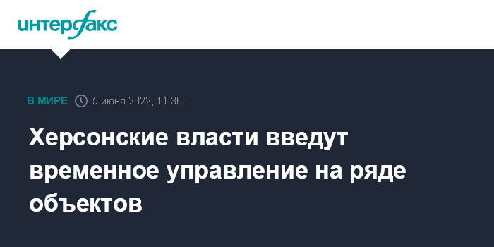Москва. 5 июня. INTERFAX.RU - Имущественный фонд создается в Херсонской области для учета всех объектов недвижимости, на некоторых будет вводиться временное управление, сообщили "Интерфаксу" в пресс-службе военно-гражданской администрации (ВГА) региона в воскресенье.