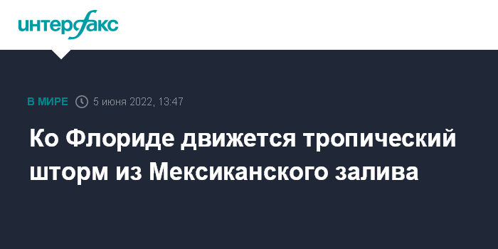Москва. 5 июня. INTERFAX.RU - В Мексиканском заливе сформировался первый за нынешний сезон ураганов тропический шторм Алекс, он двигается к американской Флориде, сообщает Associated Press.