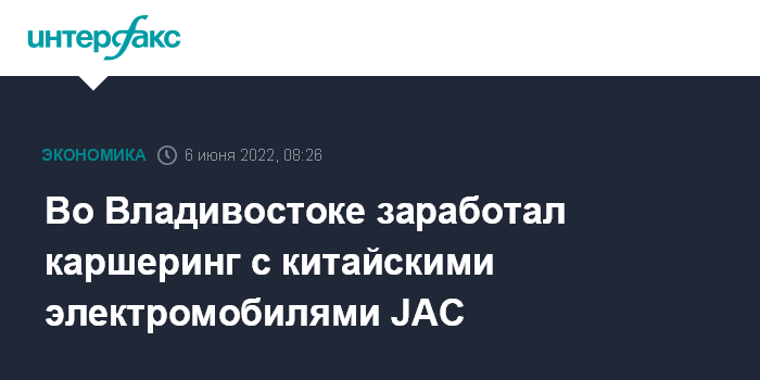 Во Владивостоке заработал каршеринг с китайскими электромобилями JAC