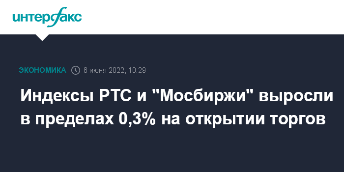 Индексы РТС и "Мосбиржи" выросли в пределах 0,3% на открытии торгов