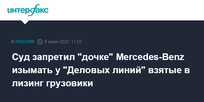 "С марта 2022 года концерн Mercedes-Benz объявил об уходе с рынка и перестал исполнять сервисные, гарантийные и иные обязательства перед нами. В связи с этим мы были вынуждены обратиться в суд за защитой своих прав", - прокомментировали "Интерфаксу" причину обращения в суд в пресс-службе "Деловых линий", не уточнив, о каком именно объеме договоров в количестве транспортных средств идет речь.