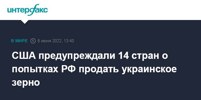По ее информации, письмо было разослано в середине мая по дипломатическим каналам. "США направили предупреждение 14 странам, в основном африканским. Согласно утверждениям Вашингтона, российские суда вышли из портов близ Украины с грузом, который госдеп назвал "украденным украинским зерном", - говорится в статье. Согласно утверждениями США, речь шла как минимум о трех судах.