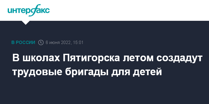 Москва. 6 июня. INTERFAX.RU - В Пятигорске в школах на летние каникулы организуют трудовые бригады, сообщил в телеграм-канале глава города Дмитрий Ворошилов.