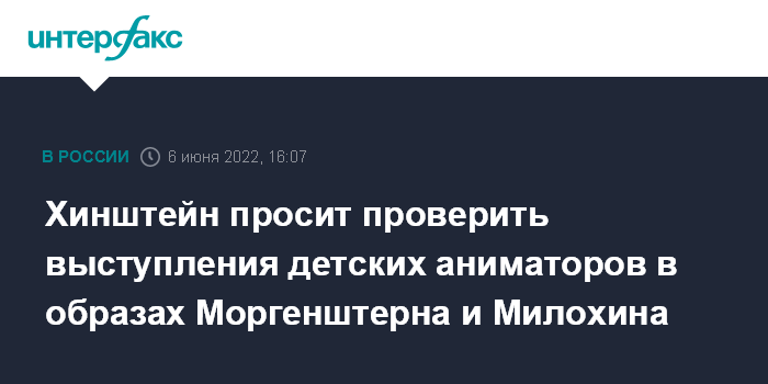 Хинштейн просит проверить выступления детских аниматоров в образах Моргенштерна и Милохина