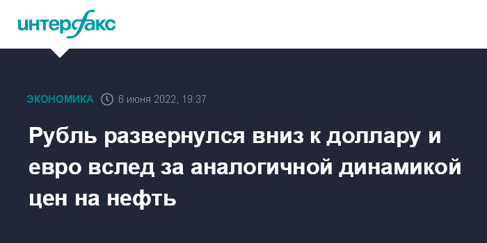 Рубль развернулся вниз к доллару и евро вслед за аналогичной динамикой цен на нефть