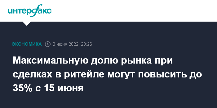 Максимальную долю рынка при сделках в ритейле могут повысить до 35% с 15 июня