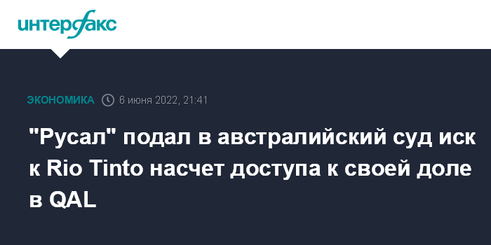 В свою очередь Rio объявила о намерении разорвать все коммерческие отношения с российским бизнесом в связи с действиями РФ на Украине. Rio получила единоличный контроль над QAL в апреле, лишив "Русал" доступа к его доле в продукции СП.