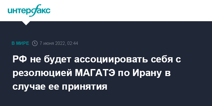 РФ не будет ассоциировать себя с резолюцией МАГАТЭ по Ирану в случае ее принятия
