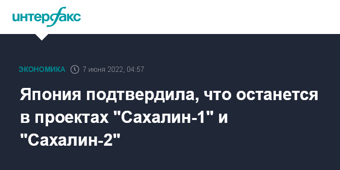 Москва. 7 июня. INTERFAX.RU - Правительство Японии не намерено выходить из проектов "Сахалин-1" и "Сахалин-2" по добыче сжиженного природного газа и нефти, следует из ежегодного отчета по энергетике "Белая книга", который пересказывает Kyodo.