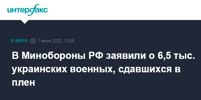 В Минобороны РФ заявили о 6,5 тыс. украинских военных, сдавшихся в плен