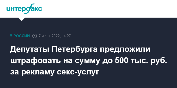 Депутаты Петербурга предложили штрафовать на сумму до 500 тыс. руб. за рекламу секс-услуг